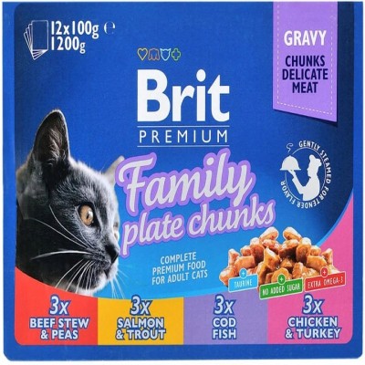 Упаковка вологого корму для кішок Brit Premium сімейна тарілка асорті 4 смаку 100 г х 12 шт (8595602